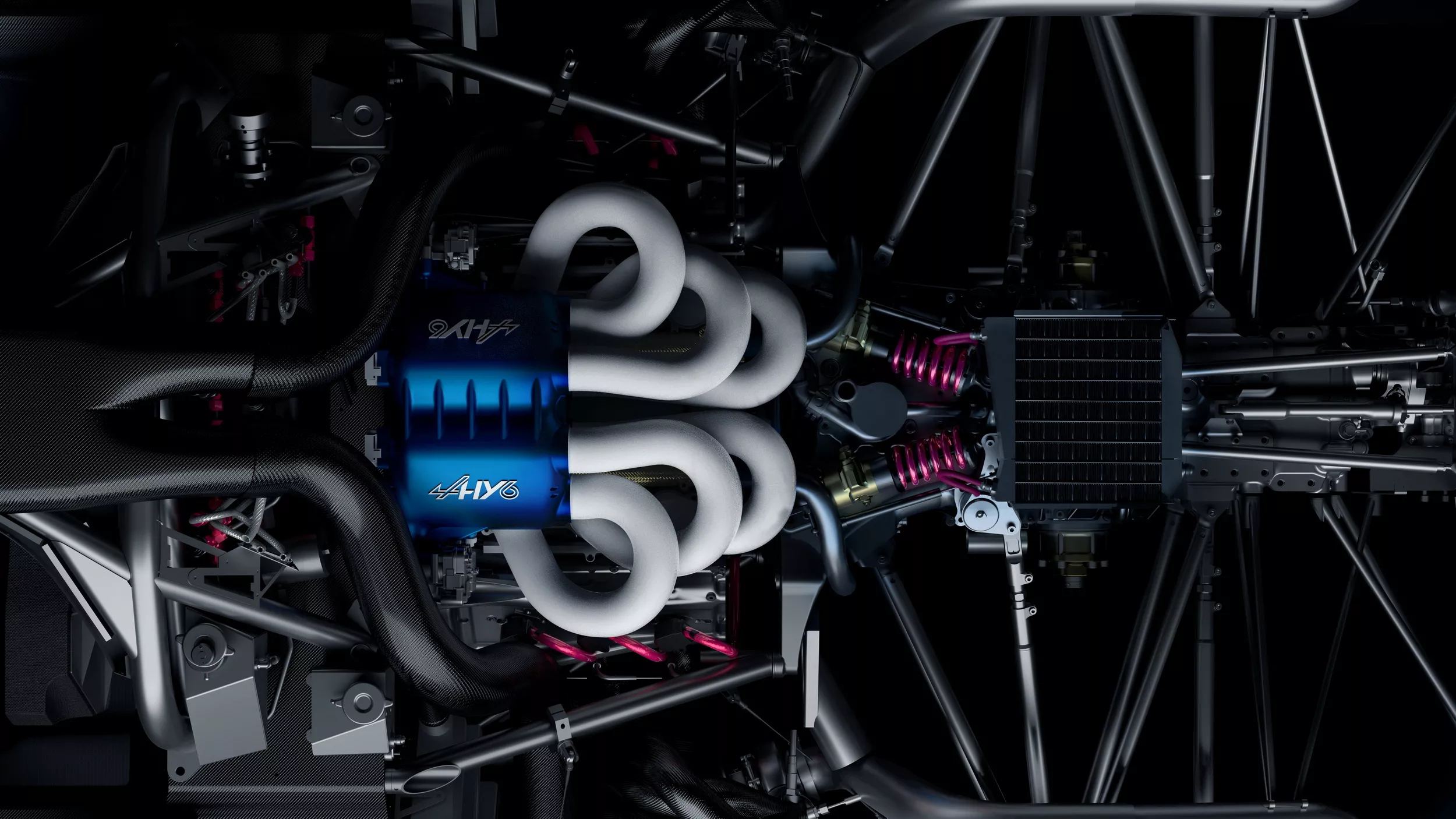 首先是全新的动力系统,由Alpine开发的双涡轮 3.5 升 V6 发动机,可提供令人形象深入的 730 马力(544 千瓦/740 马力)和 770 牛米(568 磅英尺)的扭矩。该发动机有四个链条传动顶置凸轮轴,每缸 4 个气门,彻底依托氢气运转。燃料以气态方式贮存在三个 2.1 公斤(4.6 磅)的高压氢气罐中。动力经过六速次序 Xtrac 变速箱传输到后轴。